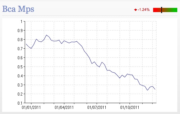 Crisi nerissima per la FONDAZIONE e la BANCA MPS…. E non è colpa della crisi!!!! CRISI EURO SPREAD IL SUICIDIO DELLA FONDAZIONE MONTE DEI PASCHI DI SIENA – CORSERA MAGAZINE La bella performance del titolo MPS in un anno Vota:Condividi: Condividi su X (Si apre in una nuova finestra) X Condividi su Facebook (Si apre in una nuova finestra) Facebook Condividi su Pinterest (Si apre in una nuova finestra) Pinterest Altro Invia un link a un amico via e-mail (Si apre in una nuova finestra) E-mail Stampa (Si apre in una nuova finestra) Stampa Mi piace Caricamento... Correlati