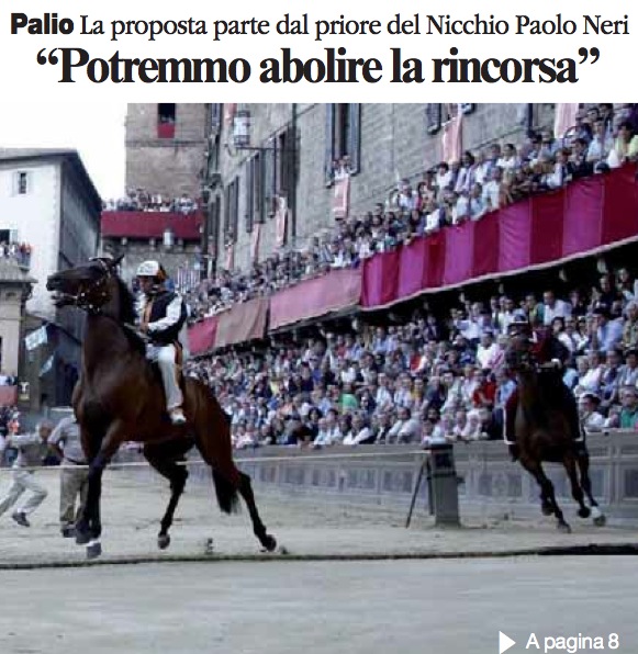 IL PALIO CHE CAMBIA: “ABOLIAMO LA RINCORSA”… SAREBBE MEGLIO ABOLIRE I PRIORI!!!! Da IL CORRIERE di SIENA Vota:Condividi: Fai clic per condividere su X (Si apre in una nuova finestra) X Fai clic per condividere su Facebook (Si apre in una nuova finestra) Facebook Fai clic qui per condividere su Pinterest (Si apre in una nuova finestra) Pinterest Altro Fai clic per inviare un link a un amico via e-mail (Si apre in una nuova finestra) E-mail Fai clic qui per stampare (Si apre in una nuova finestra) Stampa Mi piace Caricamento... Correlati
