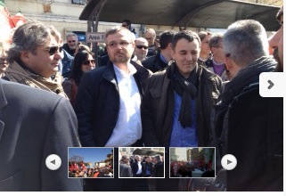 Una marea di gente attraversa la città, si parte dalla LIZZA. Mi fermo davanti alla ROCCA, la gente numerosa e rumorosa scandisce slogan contro VIOLA, il più gettonato é “VIOLA, VIOLA va….” Oppure: “VIOLA, VIOLA vieni a pescare con noi ci manca il v….!”. Mentre verso le finestre chiuse della ROCCA SALIMBENI sede storica del Monte dei PASCHI si indirizzano cori del tipo “L…I, L…I, ANDATEVENE!!!” Rimango stupito dalla quantità delle persone che si sono mobilitate e penso:”Cazzarola ma se si svegliavano prima non era meglio?”. Qualcuno poi urla: “C’è anche il CECCUZZI, ha avuto un calo di zuccheri è in un BAR!” C’è chi dice che è circondato dalla DIGOS e chi invece da BODYGARD personali. Francamente, di FRANCO oggi non me ne importa una mazza, oggi è una grande giornata, storica… Forse solo tardiva!!! Una cosina per il giornalista INNOMINABILE di NO TAV o BLACK BLOCK nemmeno una traccia, caso mai si è visto qualche politico di sua conoscenza con la faccia di gomma!!!