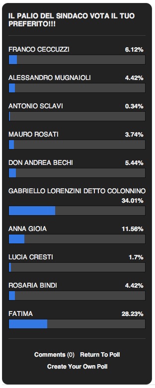 ripreso dal palio e dalle sue conseguenze, caro Santo, ti richiedo anch’io se puoi di mettere quel sondaggio, ne vedremo delle belle!