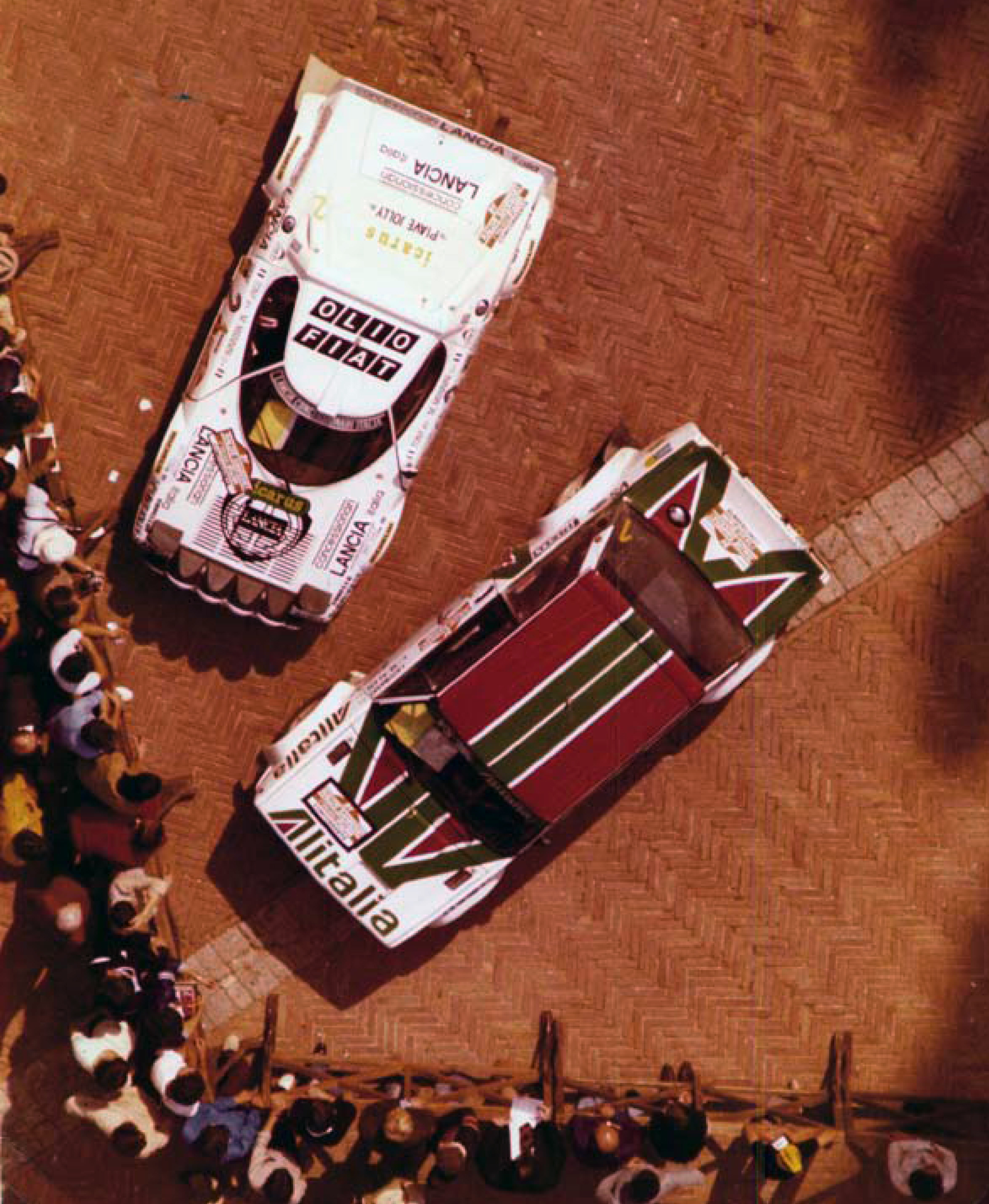 He si!….gli appassionati riconoscono certo la macchina di Toni Fassina e accanto quella di Marku Allen…in quella piazza c’erano otto campioni del mondo rally…