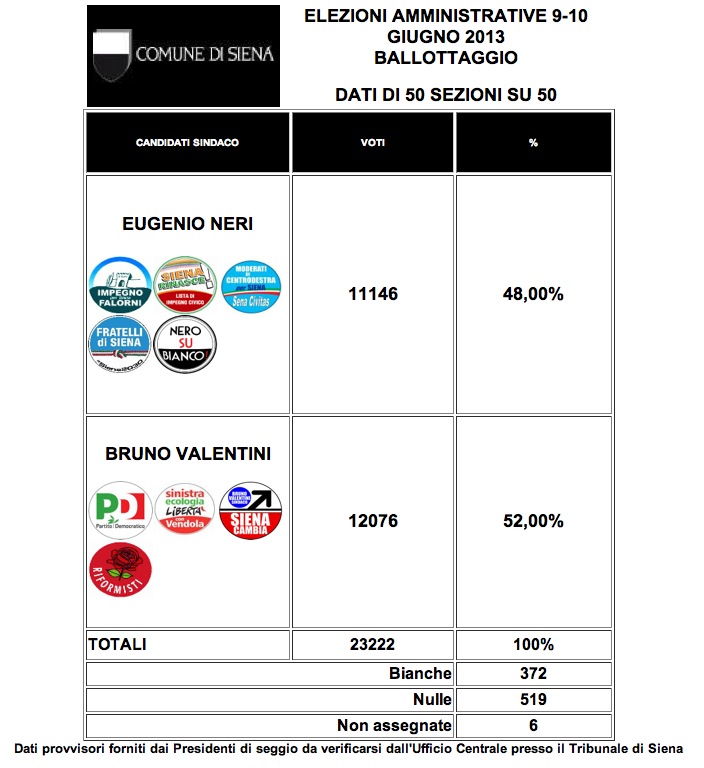 questo schema è proprio mirato! perché non mette gli aventi diritto? perché non fa risultare che Valentini è votato da poco più di UNO SU QUATTRO tra i senesi?