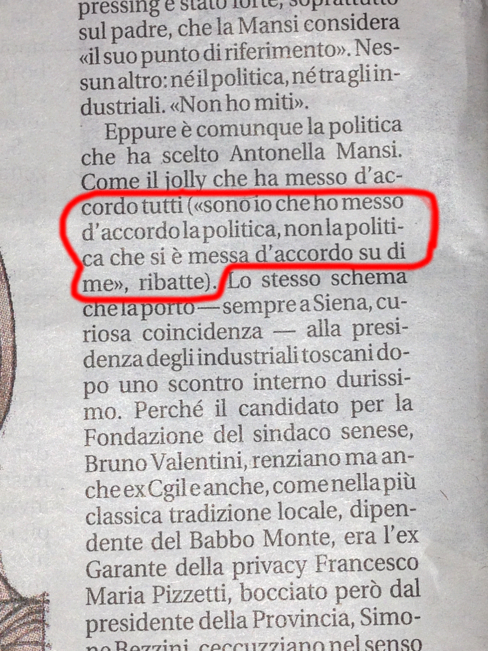 L’Eretico di Siena mi ha consigliato la lettura di un articolo a pagina 6 di AFFARI e FINANZA di REPUBBLICA di oggi . Ne ho estrapolato una frase lascio a voi ogni commento…
