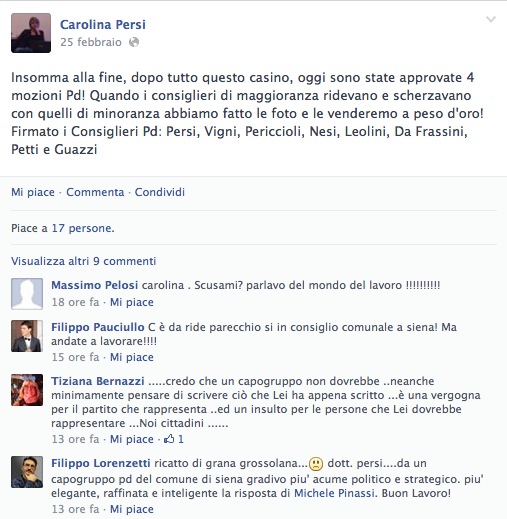 Facebook sembra ormai diventato lo sfogatoio di tutto e di più. Magari un ragazzino può farsi prendere dalla smania di scrivere lo capisco!!! Ma un capogruppo di un Partito dovrebbe essere più prudente… Buona lettura…