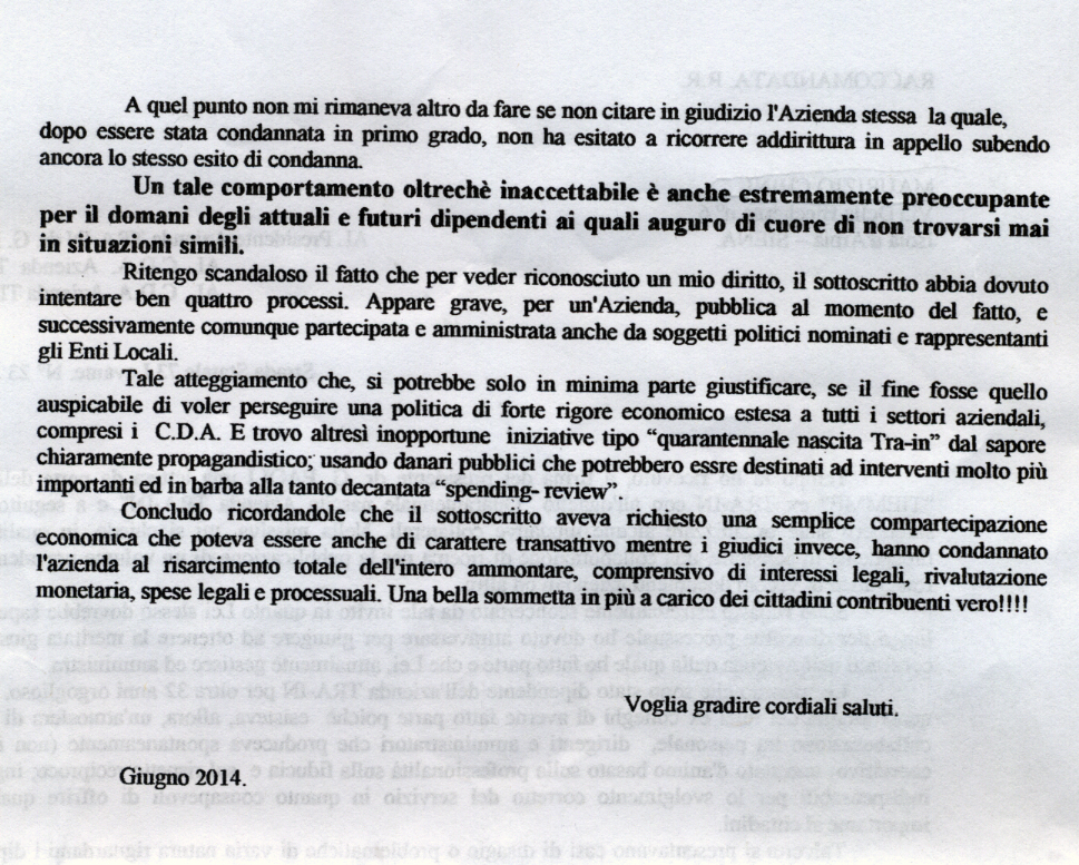 One reply to “La posta dei Lettori – Ecco come il TRAIN tratta i dipendenti…”