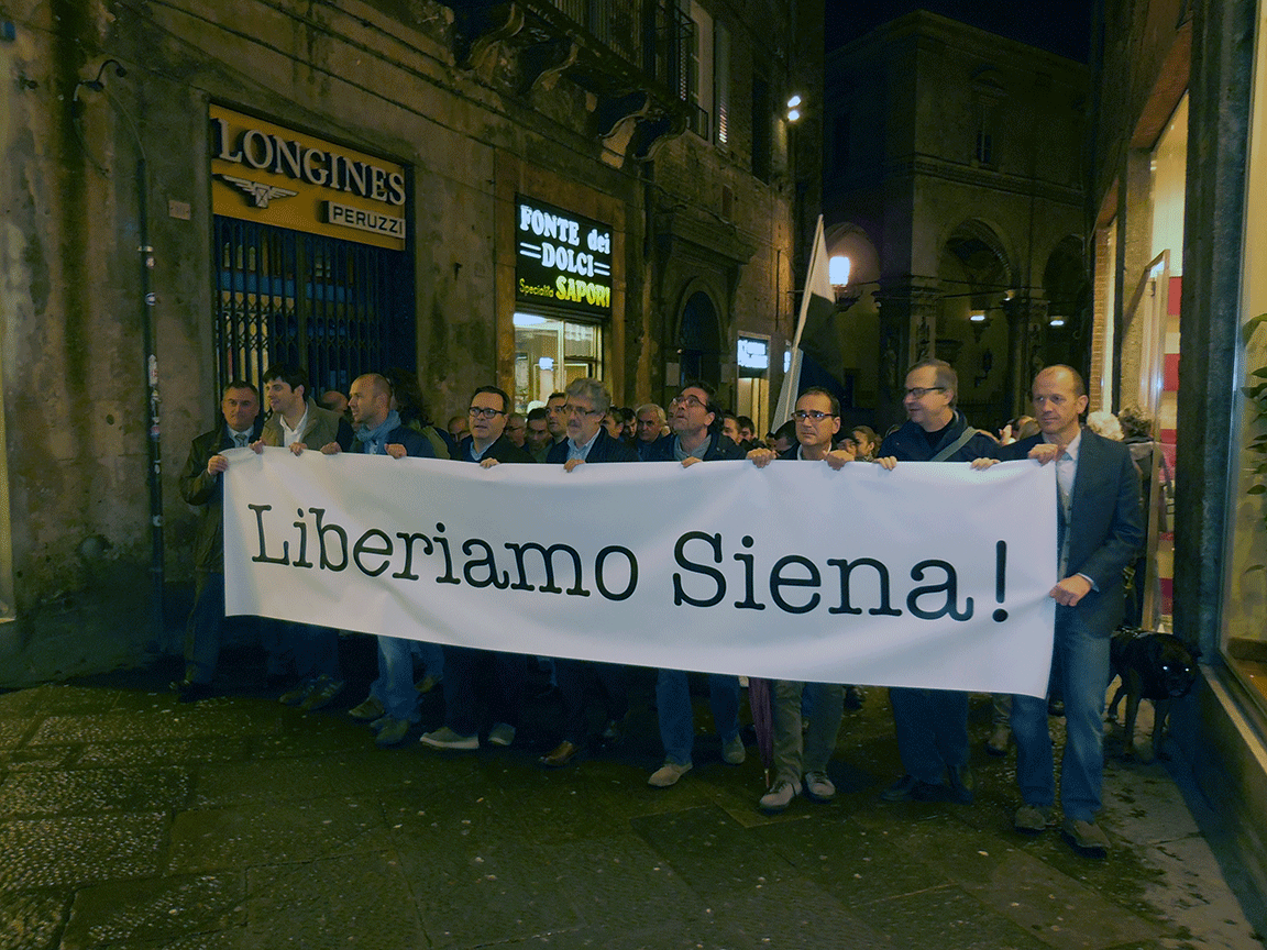 Vedere tutti assieme i consiglieri di minoranza è stato inusuale. Sia dovuto all’eccezionale crisi che attraversa Siena in un contesto più generale di profonda crisi nazionale e alla inadeguatezza della risposta politica della litigiosa maggioranza non toglie il merito di chi ha dato la sua disponibilità alla marcia.