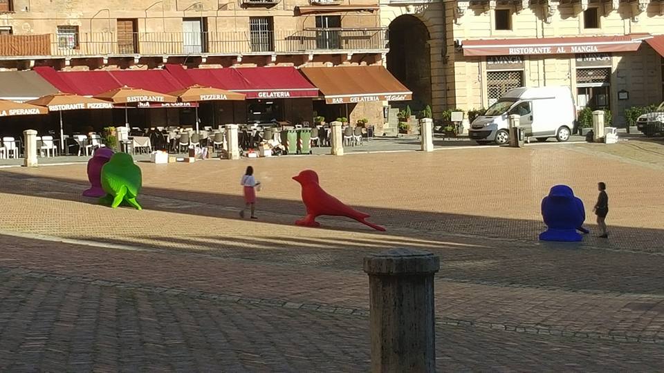 Non sono certo un esperto d’arte. Lavorando però da oltre 20 anni in una delle più belle e ricche Basiliche italiane, vedere gli uccelli paduli in Piazza del Campo e sentirmi dire che sono arte mi vien da ridere! Dico io ma studiare un po’ di estetica con San Tommaso d’Aquino?