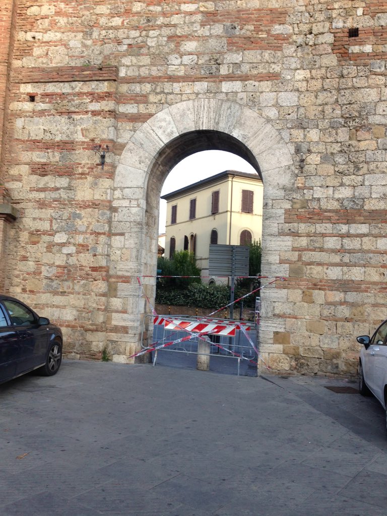 Riprendo la notizia di sabato (nessun giornale cittadino lo ha fatto), quando uno studente ha rischiato di essere colpito da un mattone caduto da una delle porte laterali di porta Camollia. La soluzione per ora trovata dal Comune di Siena è quella già messa in atto a porta Romana, dove da un anno e mezzo sono presenti le orribili transenne. Un bel biglietto da visita per i turisti!
