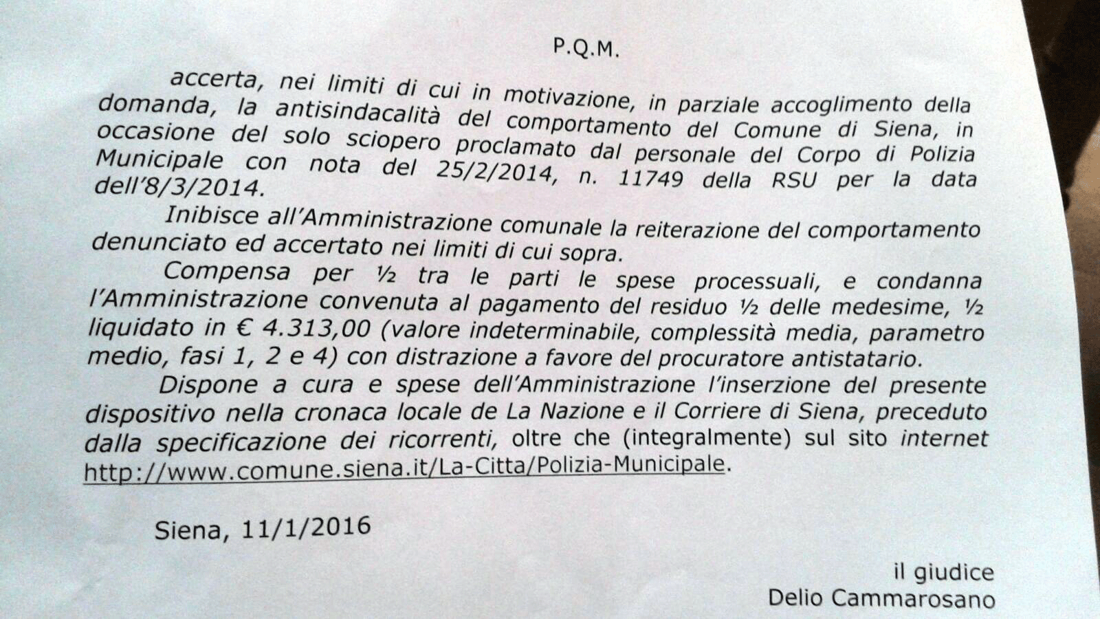 4 replies to “Ultim’ora – Il Comune di Siena condannato per comportamento anti-sindacale”