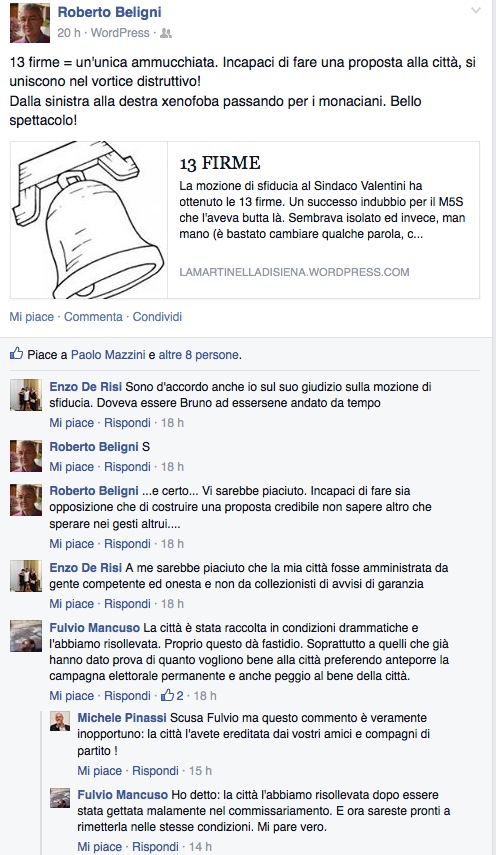 Vi prego di leggere e leggere bene. Ma dove erano le persone che ce l’hanno con quelli che chiedono la sfiducia al Sindaco perché indagato per i fatti di Monteriggioni? Che faccia hanno? Non ci si fa più con queste persone!