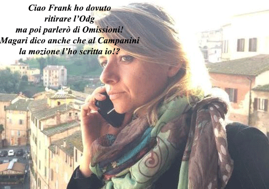 Veniamo ad ieri la valente Ceccuzzik Girl (Carolina non ci scordiamo il passato!) è andata baldanzosa alla riunione dei capigruppo pretendendo che le opposizioni condividessero l’ordine del giorno da Lei presentato. Sono stati più di un’ora a litigare, poi la Ceccuzzik Girl ha dovuto fare marcia indietro ed accettare la mozione del Campanini emendata. Questo è quanto. Bene dieci anni per cambiare idea e fare un piccolo passo verso quei senesi che hanno disagi pur pagando fior di quattrini al Comune di Siena, certe volte basterebbe usare il buon senso…