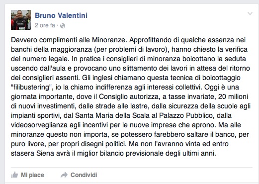 Eccoci qua! Finalmente le carte sono scoperte! Sappiamo chi ha tolto il futuro ai nostri figli, sappiamo chi ha dilapidato il patrimonio Monte dei Paschi e chi sono i responsabili dei disastri degli ultimi anni. Sono i FILIBUSTIERI della minoranza. Finalmente il nostro mitico Don Brunetto ha aperto i cassetti segreti ed ha trovato il famoso libro bianco dei disastri che aveva promesso in campagna elettorale quando non si dava pace! Peccato che non si sia accorto di avere aperto il cassetto sbagliato ed ha trovato il libro GLI ULTIMI FILIBUSTIERI scritto da Emilio Salgari…