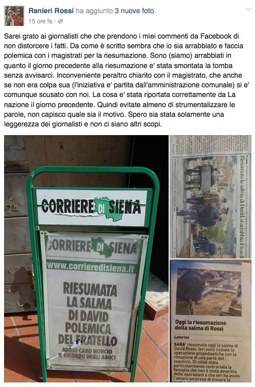 Ecco la risposta di Ranieri Rossi sul suo profilo facebook