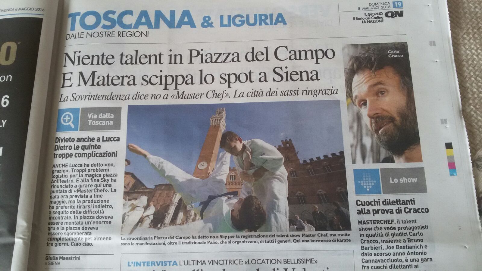 Certe scelte non le capisco, anche perché si danno dei permessi per certe cose che sono molto peggio di MASTER CHEF. Comunque quello che mi preme sottolineare è l’accostamento che un giornale locale ha fatto mettendo la foto di alcuni ragazzi del CUS SIENA JUDO a MASTER CHEF. Come ha sottolineare il fatto che il JUDO si e MASTER CHEF no.