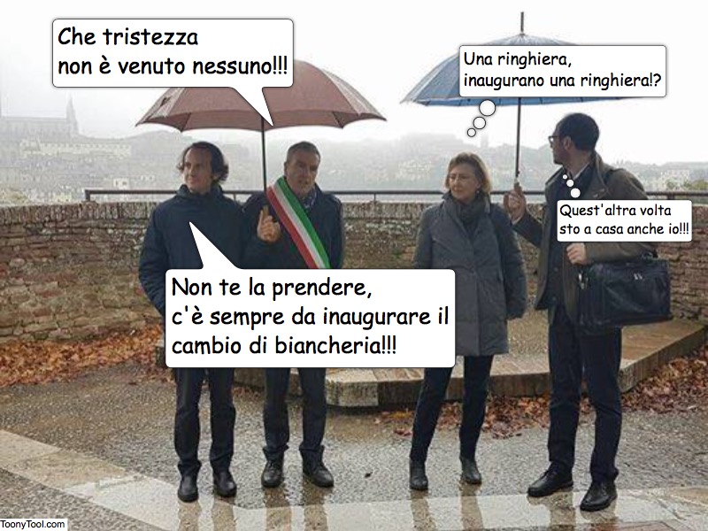 Don Brunetto però avrà un’altra occasione l’inaugurazione del Parcheggio scambiatore in strada dei Tufi. Il meteo dovrebbe essere clemente, tranne la famosa nuvoletta del Sindaco!!! PORA SIENA