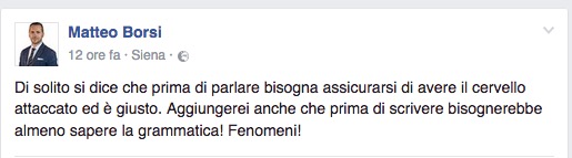 Effettivamente chi fece il titolo ha commesso un errore. Il fatto che sfugge al Borsi (fenomenale braccio destro del Minucci), è che l’errore fu di fatto corretto (come si può leggere dal permalink), ma è andata per sbaglio in onda la bozza sbagliata. Il Borsi non sapendo a cosa attaccarsi e nella furia di attaccarci, non lo ha letto evidentemente, ci dispiace per l’errore, chiediamo scusa.