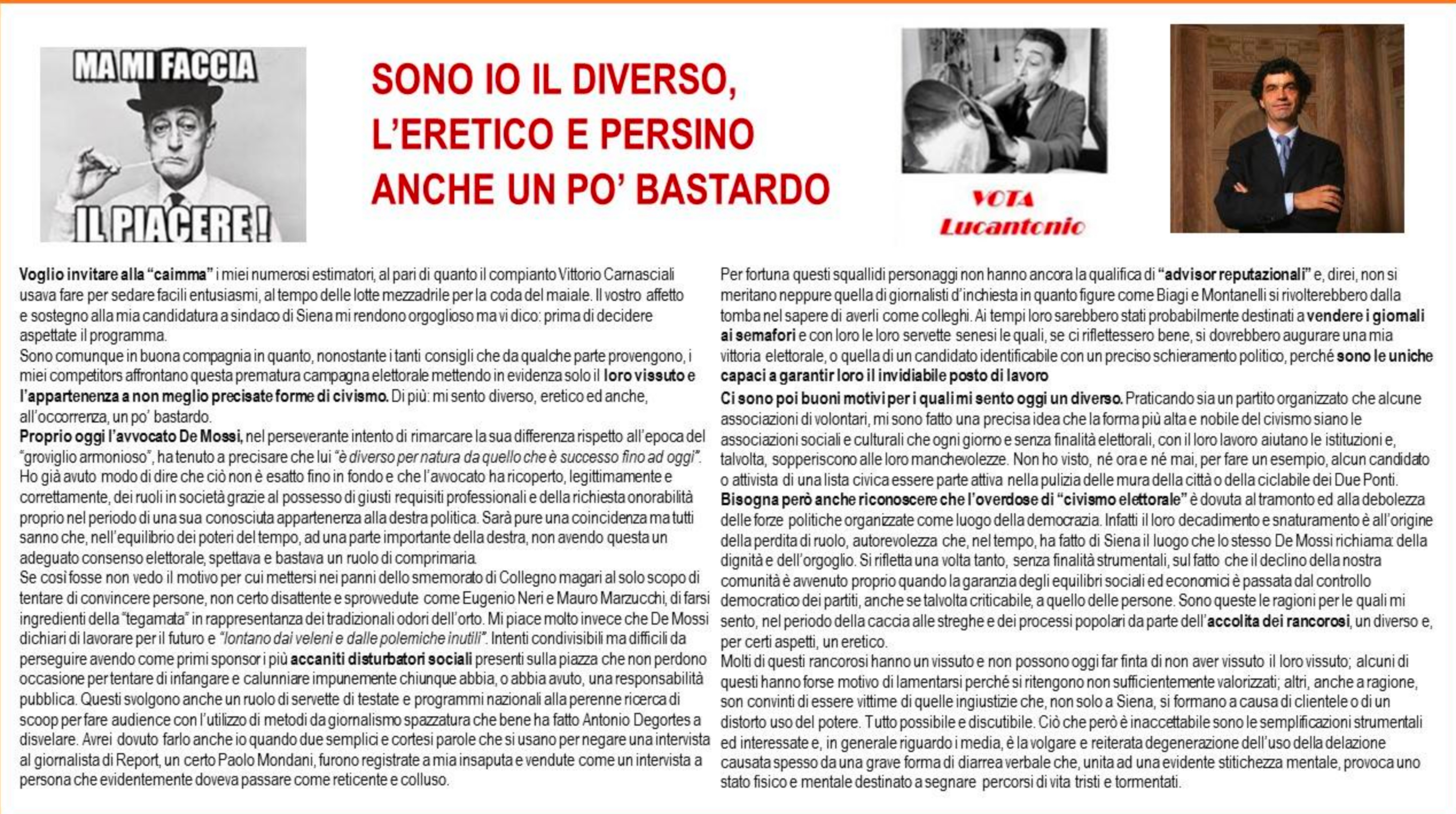 Davvero simpatico, solo per questo meriterebbe il voto. Io lo voto solamente se propone come vice sindaco il suo compaesano ed ex collega (di Banca) Vigni…