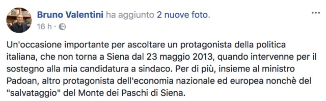 Accorrete donne, accorrete è arrivato l’arrotino!!! Ma no via! Non è arrivato l’arrotino, domani a Siena abbiamo RENZI e PADOAN una iniziativa organizzata dall’Unione comunale di Siena giovedì 22 febbraio presso il Circolo Arci di Sant’Andrea alle ore 15,30. Appuntamento da non perdere come dice il Primo cittadino DON BRUNETTO, ci sarà anche PADOAN (quello che ha salvato il MONTE!!!).