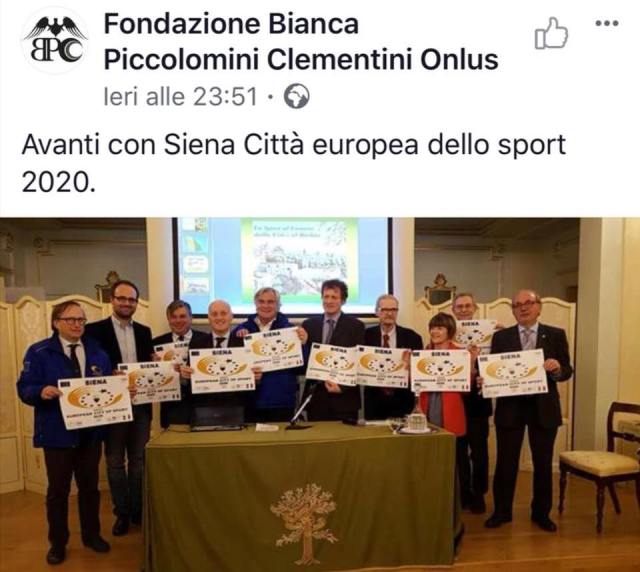 Non vedo perché la Fondazione Piccolomini debba sostenere la candidatura di Siena Capitale dello Sport . Ok capitale dello sport ( per quello che può essere ) non ok l’utilizzo delle risorse della Fondazione fuori dai fini istituzionali. Come fa notare giustamente Luciano Peccianti: