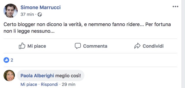 Mi dispiace di non aver visto in sala i sodali di PICCINI e VALENTINI, che ci danno dei bugiardi sui social e non hanno il coraggio di venire a esprimere le loro opinioni di fronte a noi. Ecco per esempio cosa scrive Simone Marrucci pasdaran di Piccini…