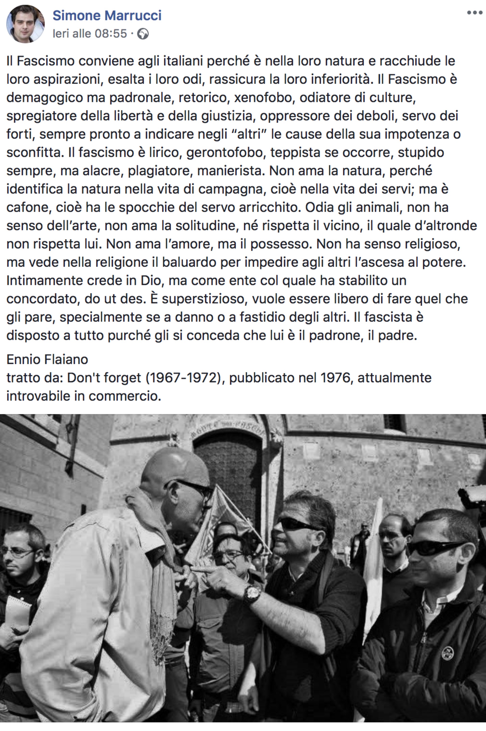 Questa volta posta un discorso di Ennio Flaiano e aggiunge una foto di Raffaele Ascheri.